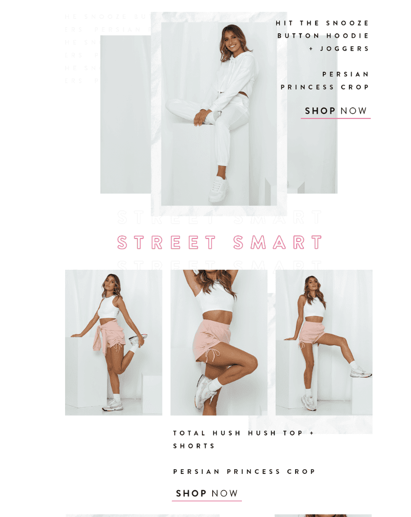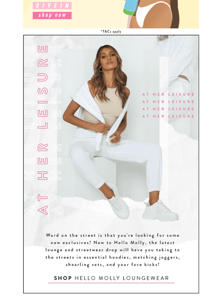 Body Copy: Word on the street is that you're looking for some new exclusives! New to Hello Molly, the latest lounge and streetwear drop will have you taking the streets in essential hoodies, matching joggers, shearling sets and your fave kicks.